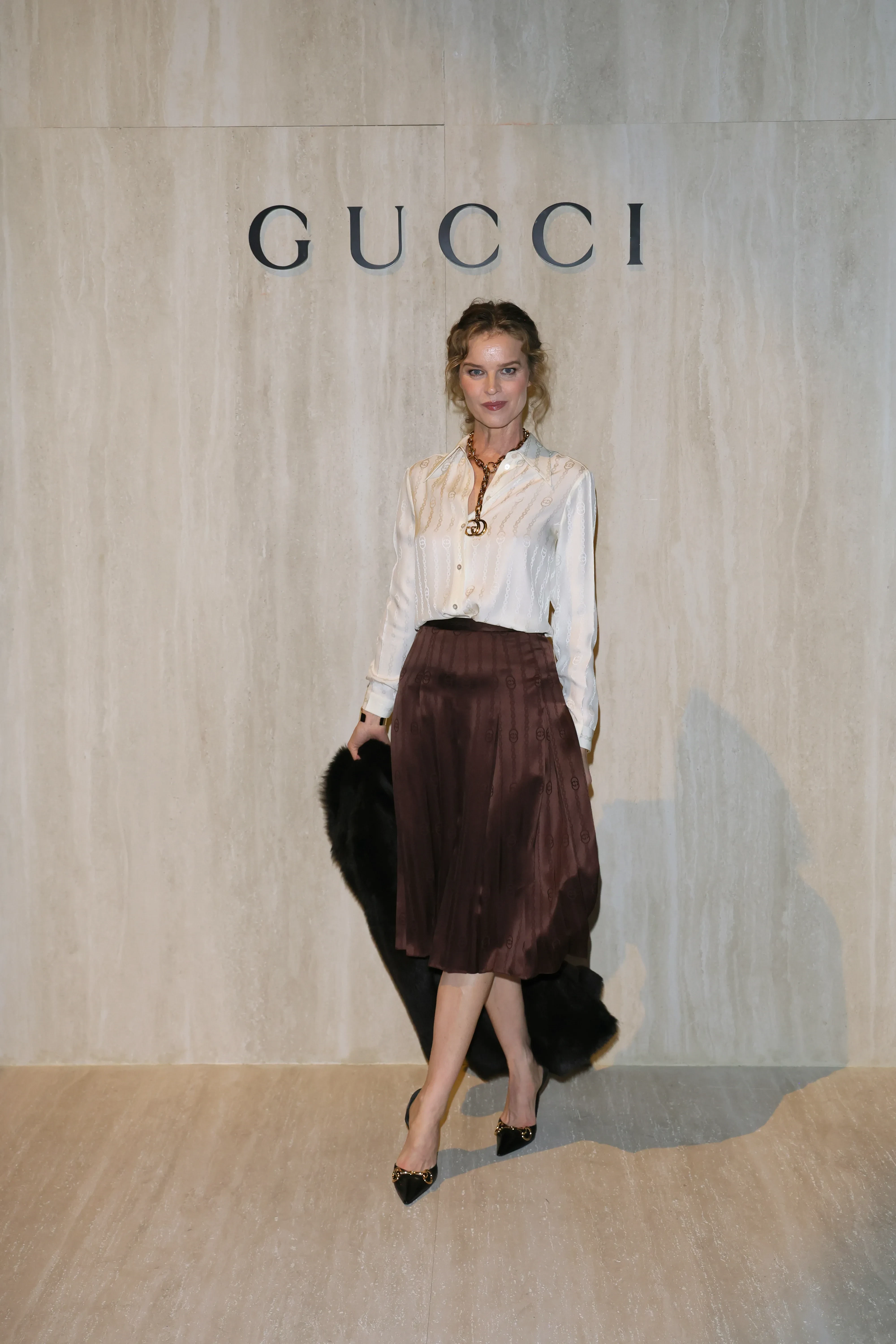 EsDeeKidПо подиуму в этот вечер прошлись сплошь звёзды. Сенсацией стал выход 52-летней Кейт Мосс в блестящем платье с экстремальным "декольте" на спине, открывающим стринги с логотипом. Супермодель дефилировала под песню итальянской дивы 1960-х Орнеллы Ванони Tu Si' Na Cosa Grande. В показе также приняли участие трансгендерная* дочь Илона Маска Вивьен Уилсон и Эмили Ратаковски.